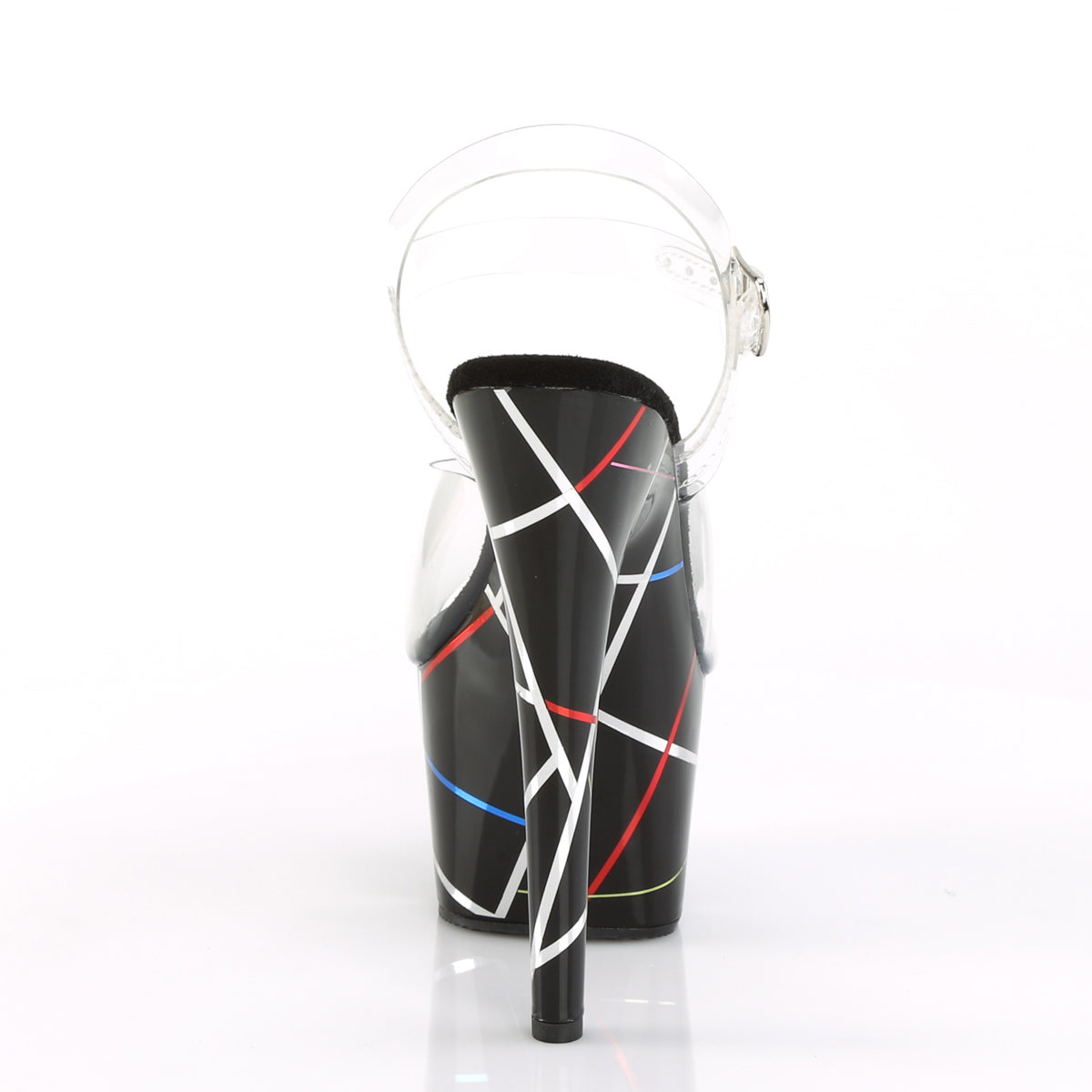 | Description | 7 "" (178mm) Talon, 2 3/4 "" (70mm) Sandale de la cheville de la cheville de la plate-forme de la plate-forme mettant en vedette des banderoles multicolores sur le fond de la plate-forme |