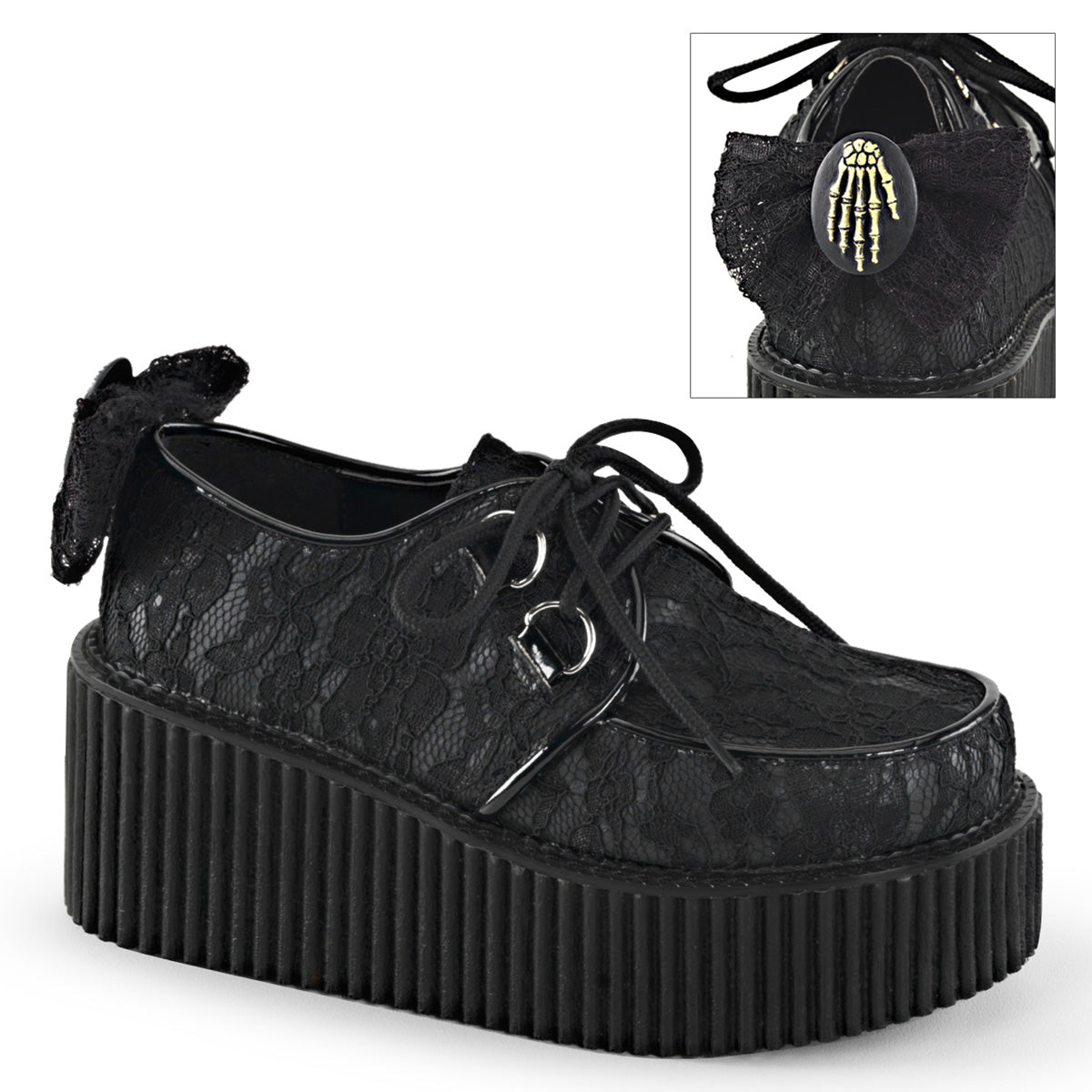 | Description | Superposition de la dentelle de la plate-forme de 3 "" (7.6cm) Creeper Doté d'un arc de dentelle avec une main de squelette et de la dentelle de dentelle et de tuyauterie |