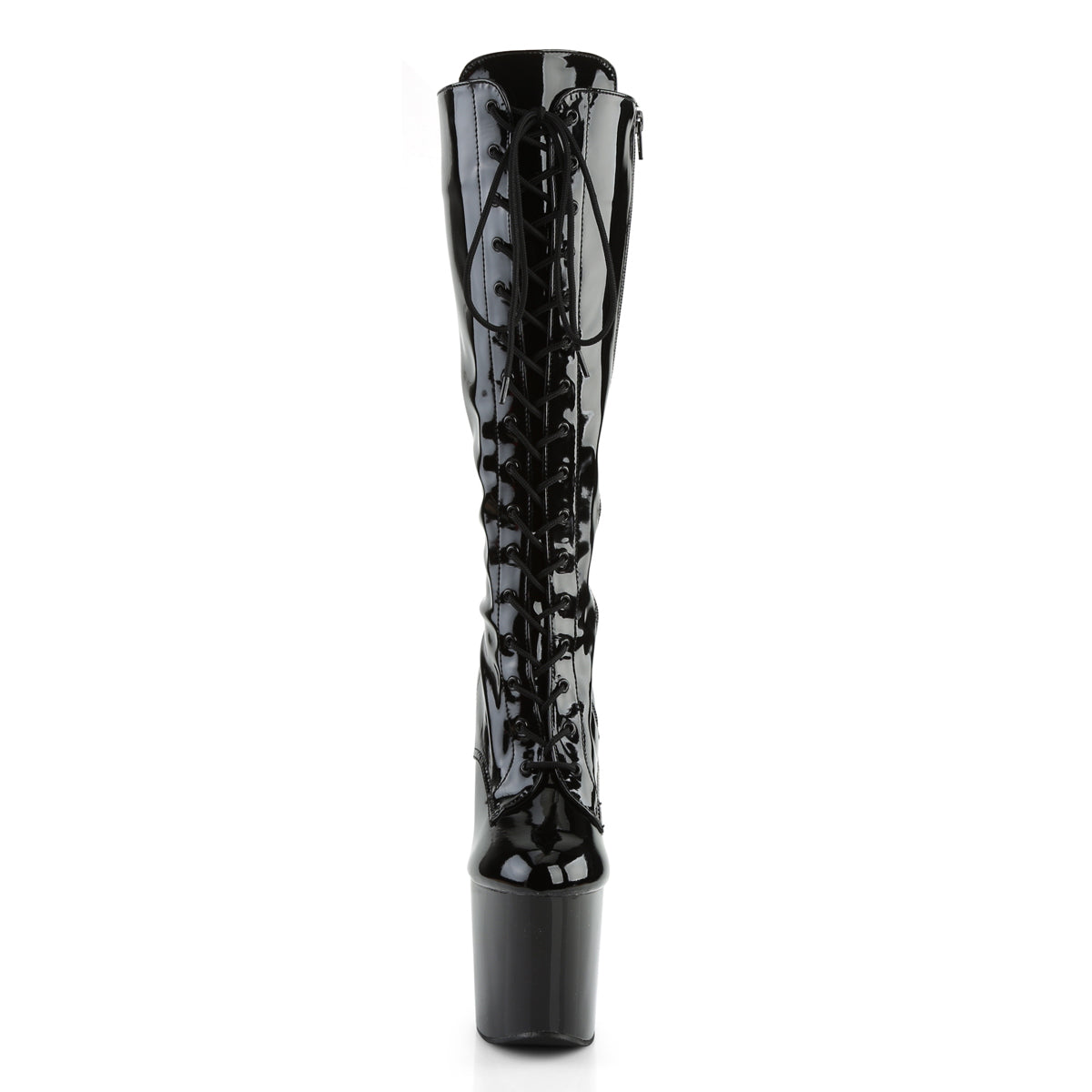 | Description | 7 1/2 "" (19,1 cm) Talon, 3 1/2 "" (8,9 cm) Plate-forme Dace-up frontale frontale au genou haut botte haute, fermeture à glissière latérale intérieure pleine longueur |