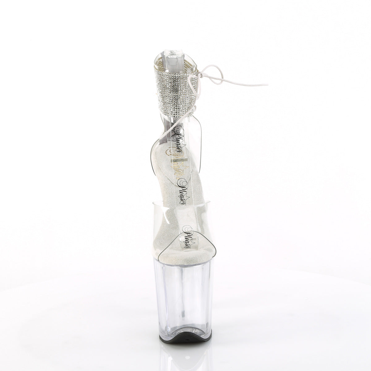 | Additional Description | 8"" (200mm) Heel, 4"" (100mm) Platform Close Back Rhinestone Embellished Ankle Cuff Sandal w/Side Lacing, Back Zip Closure |