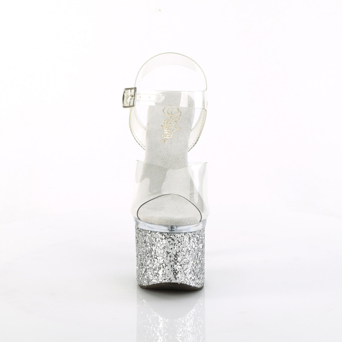 Pleaser Sandals ESTEEM-708LG Clr/Clr-Slv Glitter