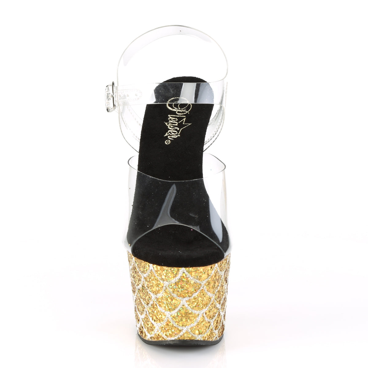 Pleaser Womens Sandals ADORE-708MSLG Clr/Gold Multi Glitter