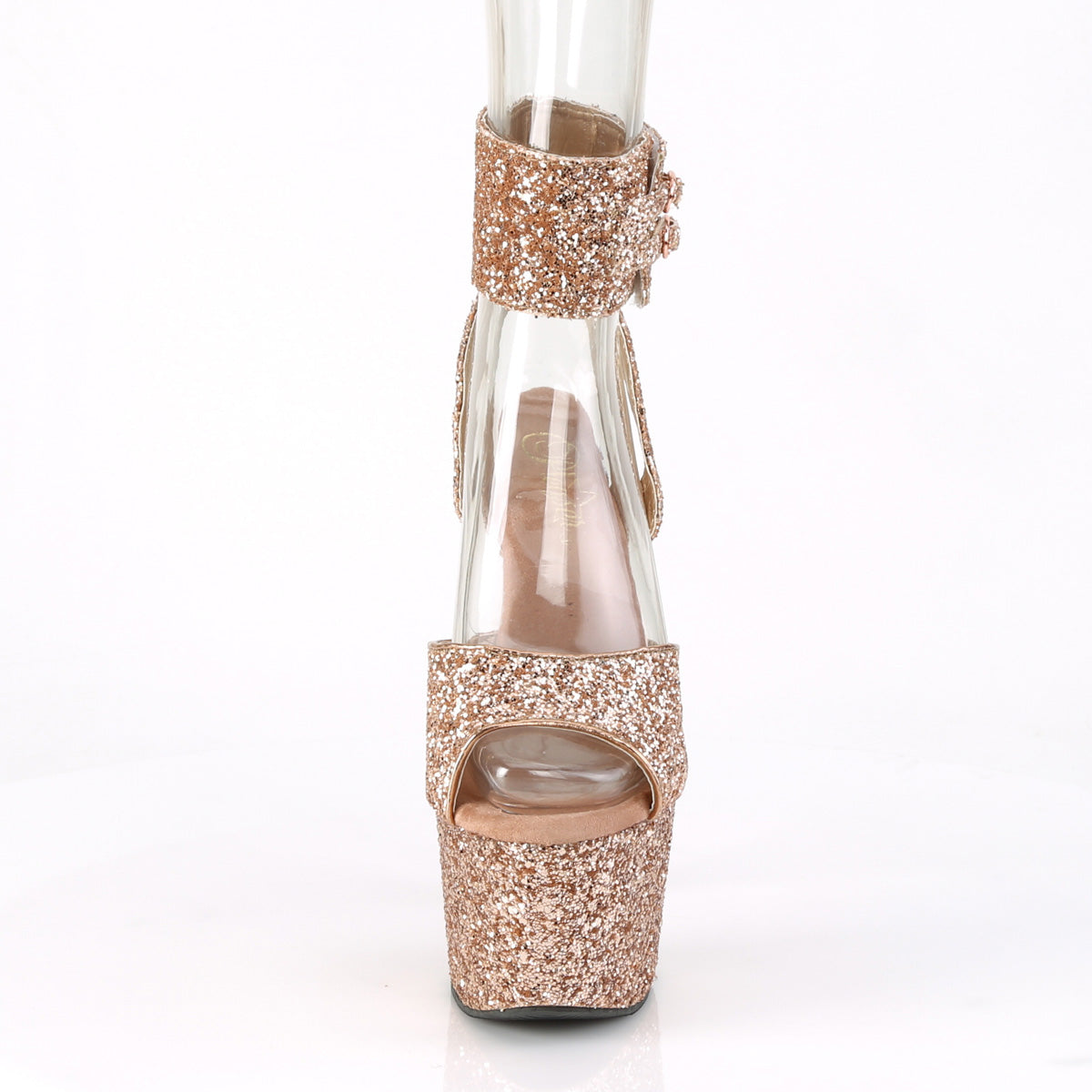 Pleaser Womens Sandals ADORE-791LG Rose Gold Glitter/Rose Gold Glitter