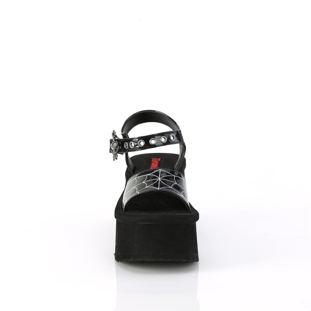 Description 2 1/2"" (64 mm) Platform Ankle Strap Sandal, Featuring Silver-Tone Spider Shaped Buckle at Strap & Spider Web Embridoered Vamp