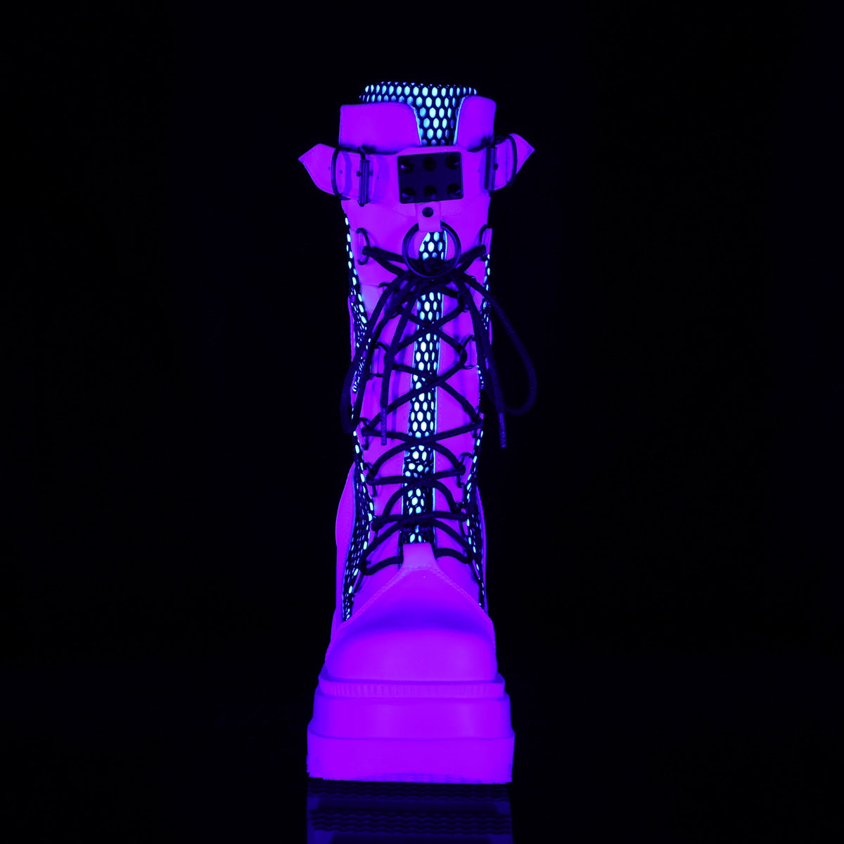 | Name | DemoniaCult Womens Boots SHAKER-70 White Vegan Leather-Blk Fishnet |