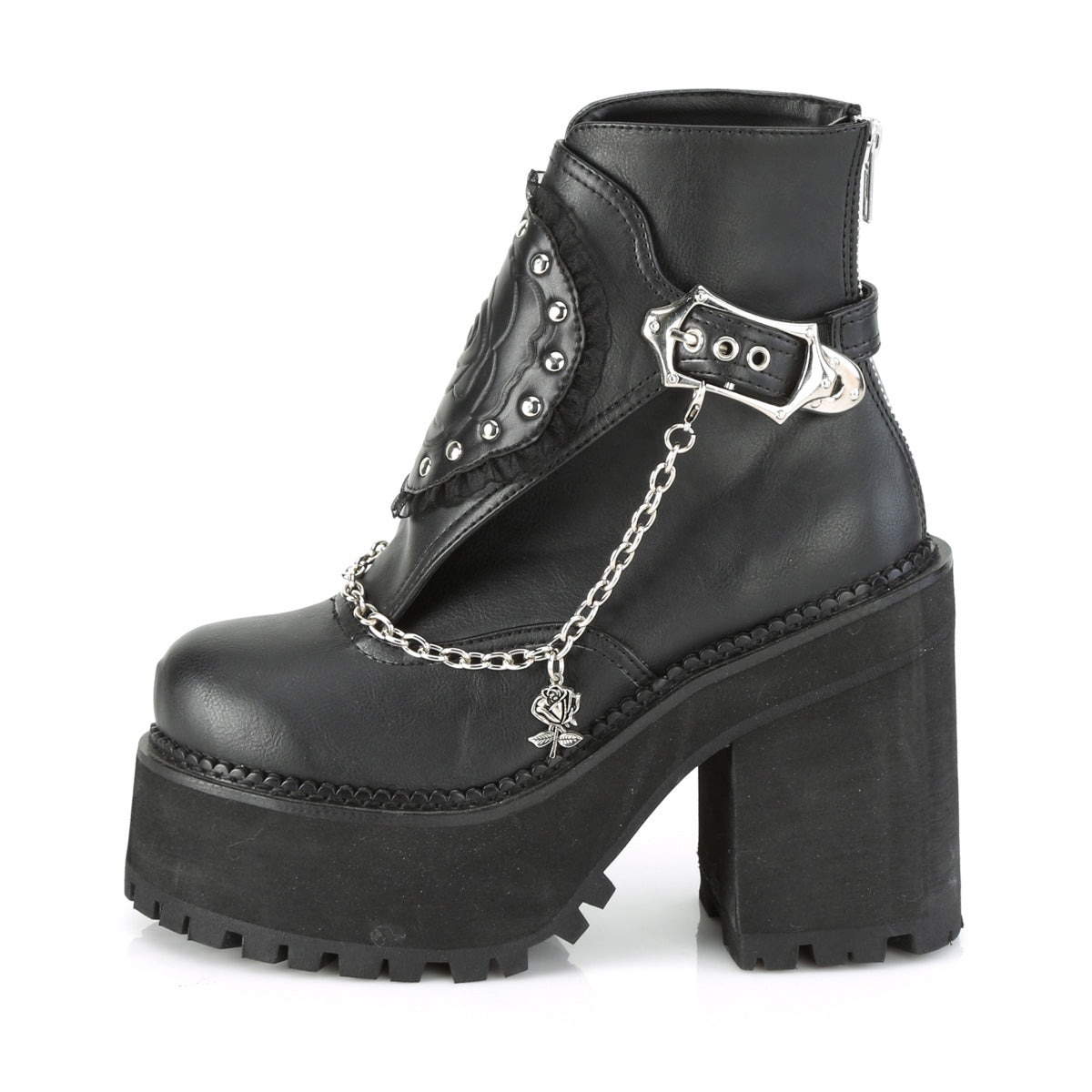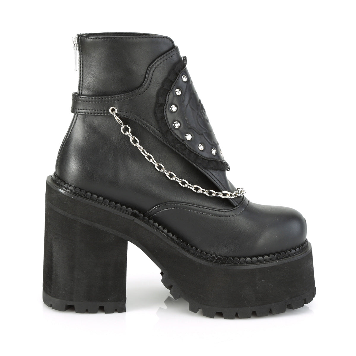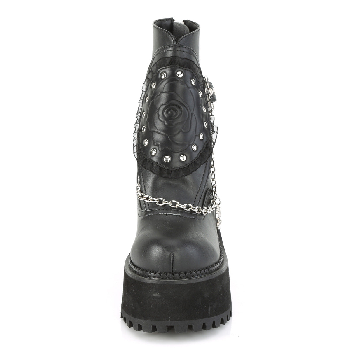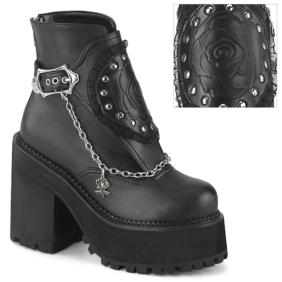 DemoniaCult Womens Ankle Boots ASSAULT-55 Blk Vegan Leather