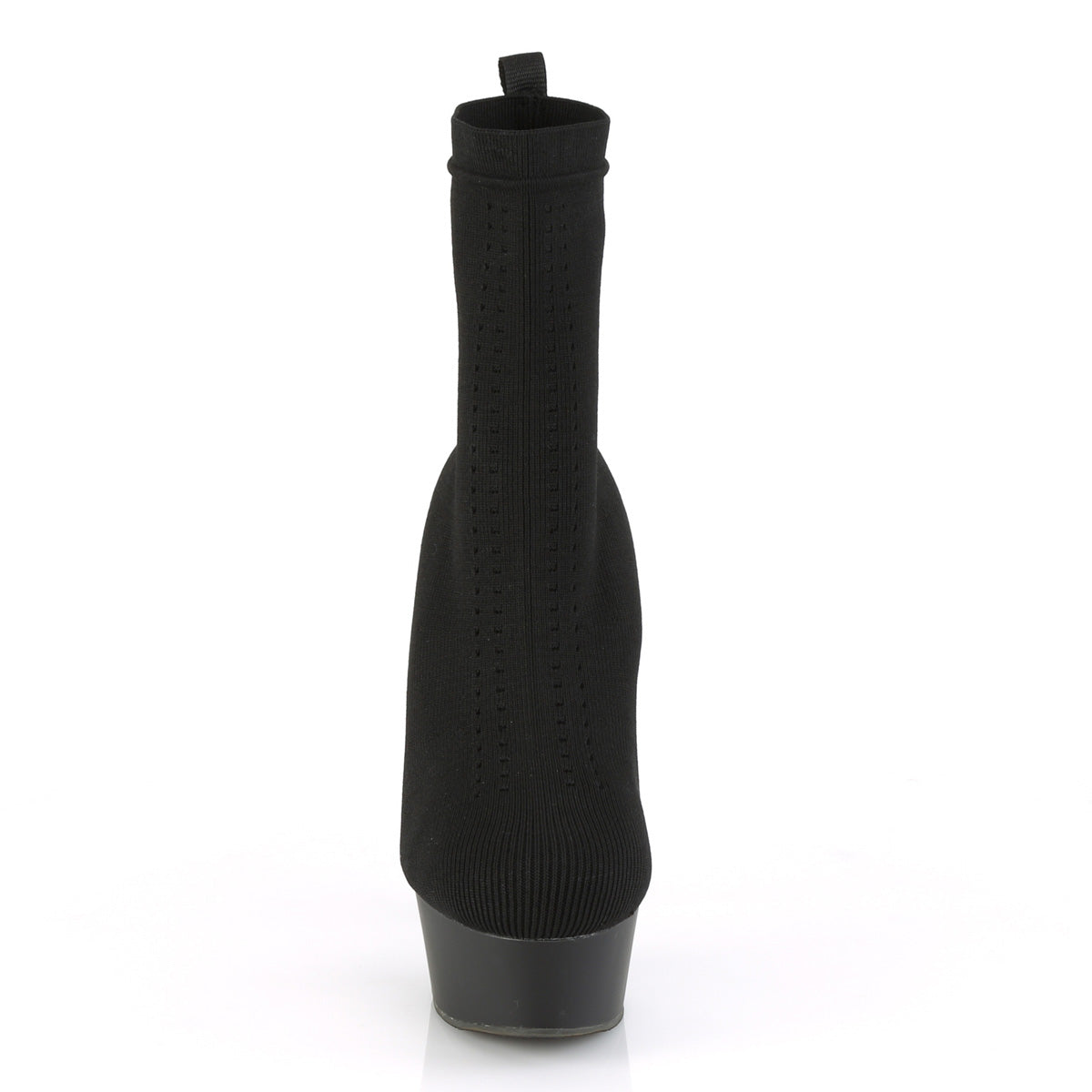 Pleaser Womens Ankle Boots DELIGHT-1002-1 Blk Stretch Knit Fabric/Blk Matte