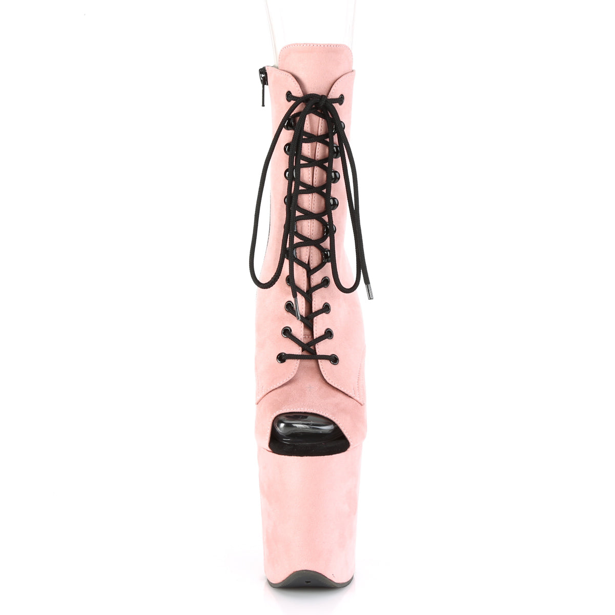 8 inch heel, 4 inch platform open toe lace-up ankle boot, side zip |