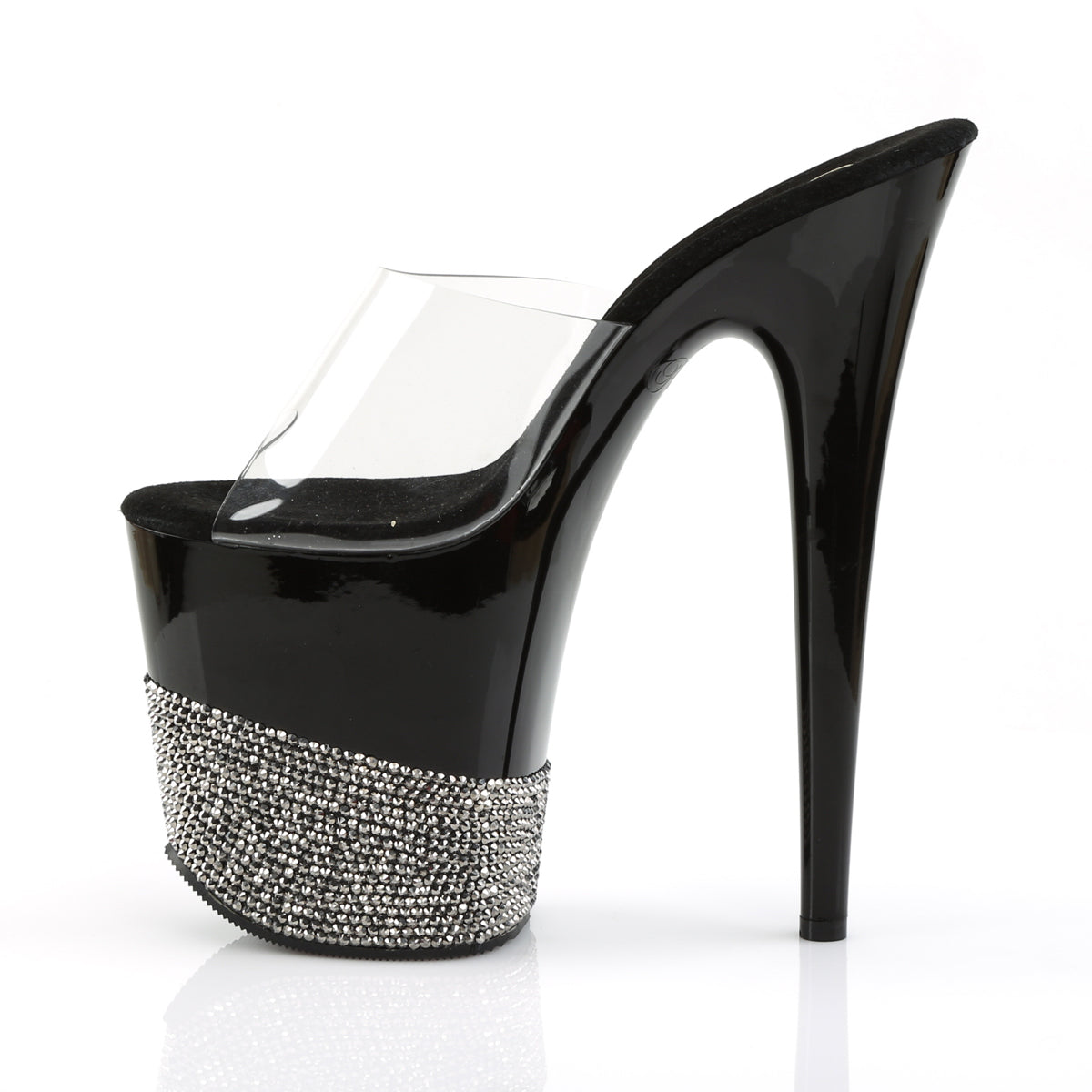 8"" (20.3cm) Stiletto Heel, 4"" (10.2cm) Platform Slide Featuring Rhinestone Encrusted All Over Lower Platform |