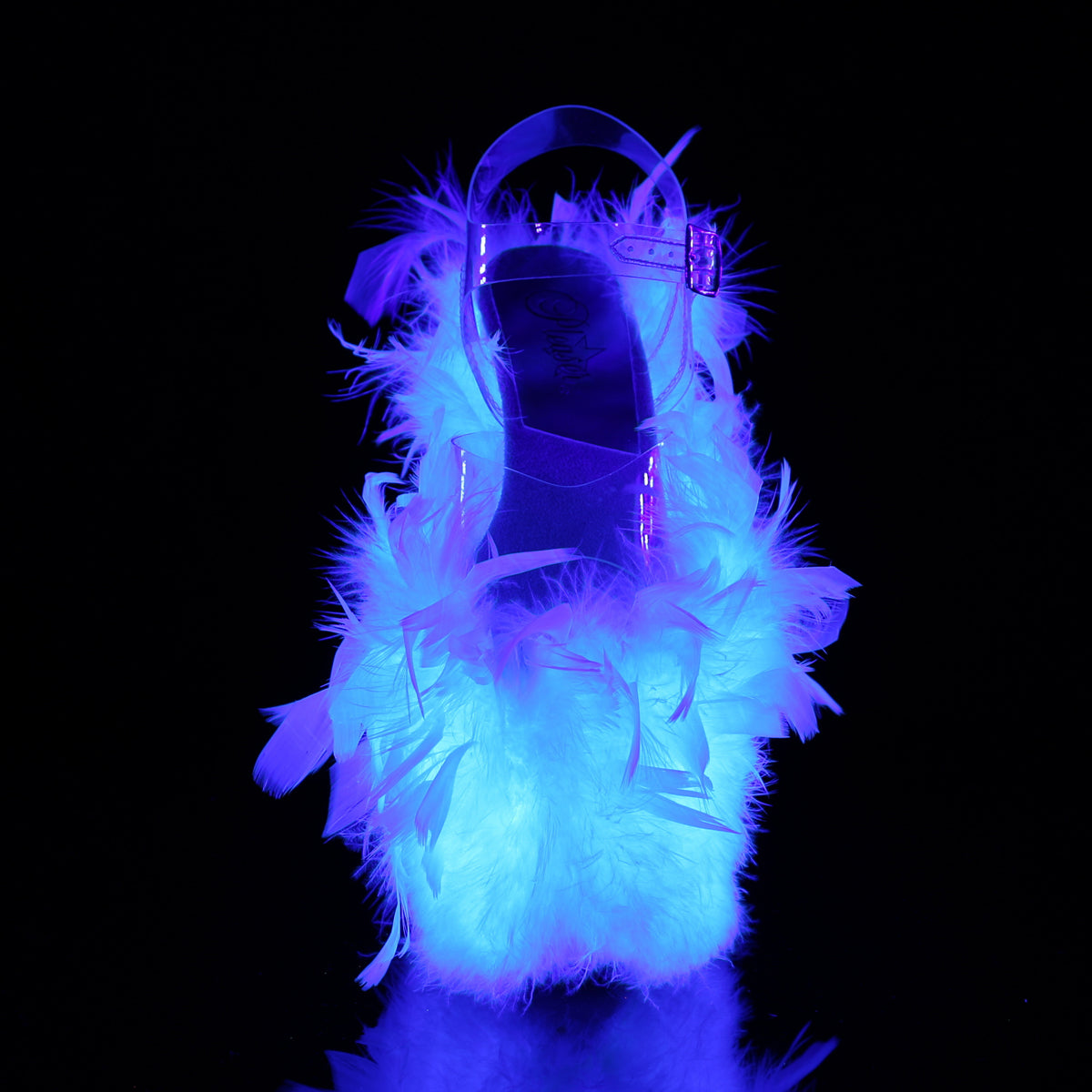 Pleaser Womens Sandals FLAMINGO-808F Clr/Neon Wht Marabou Feather