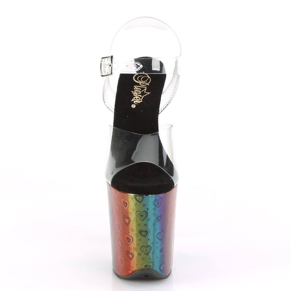 Additional Description 8"" (200mm) Heel, 4"" (100mm) Platform Ankle Strap Sandal Featuring Platform Bottom Wrapped With Rainbow Hologram w/ Hearts