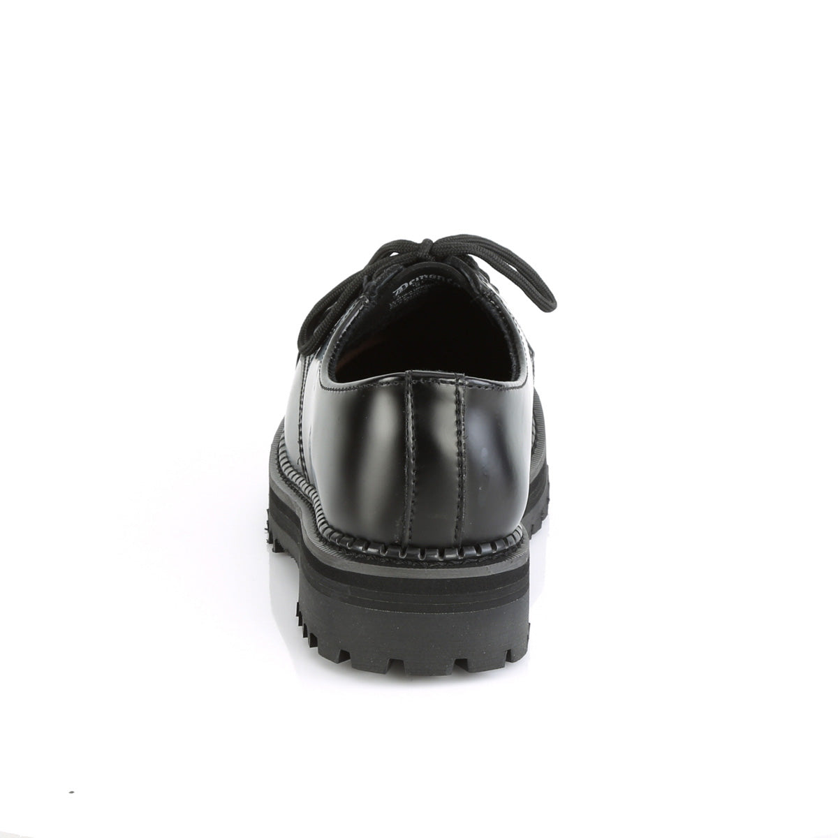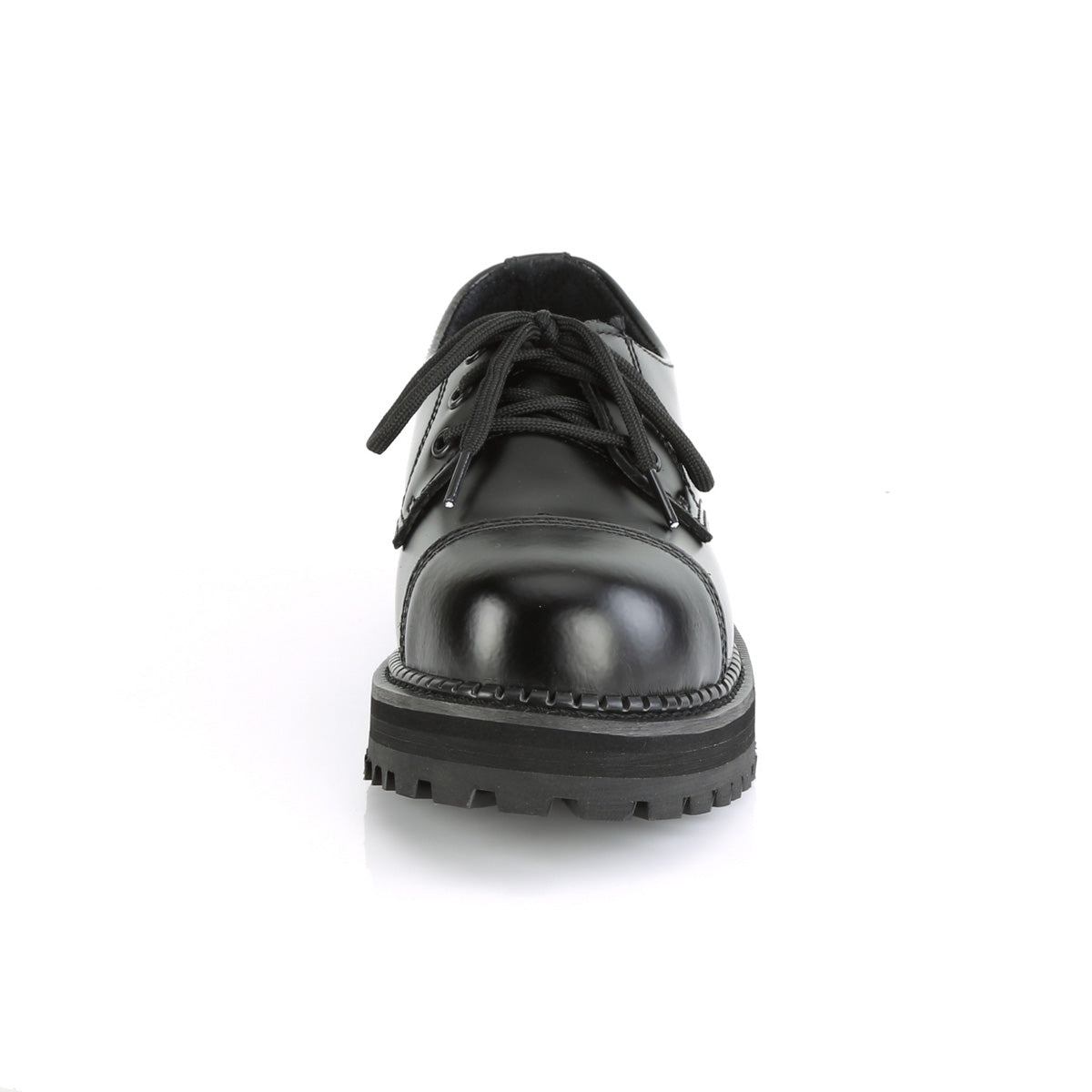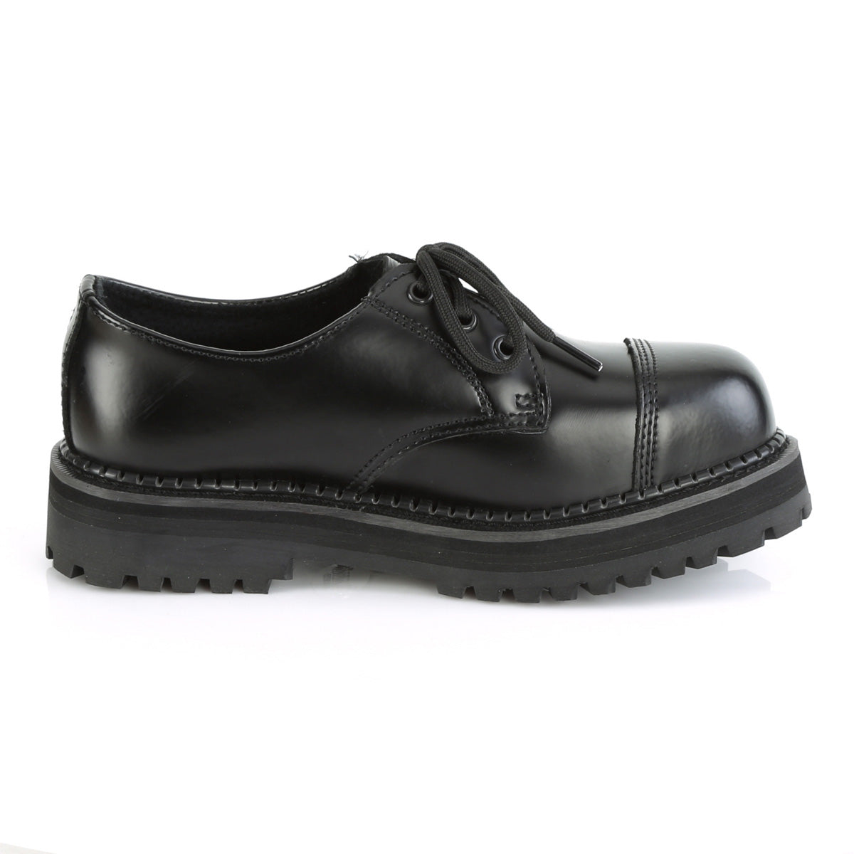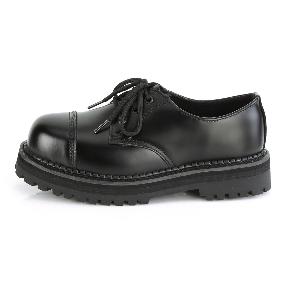 Demonia 3 Eyelet Unisex Leather Steel Toe Classic Shoe, Rubber Sole |