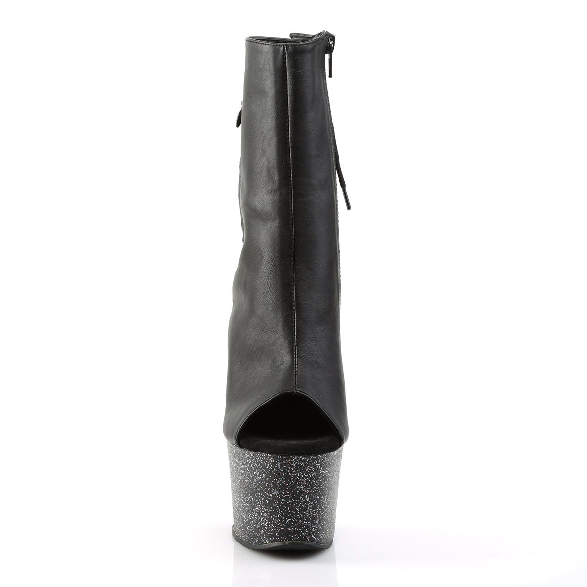 7 inch heel, 2 3/4 inch platform open toe/heel ankle boot, side zip