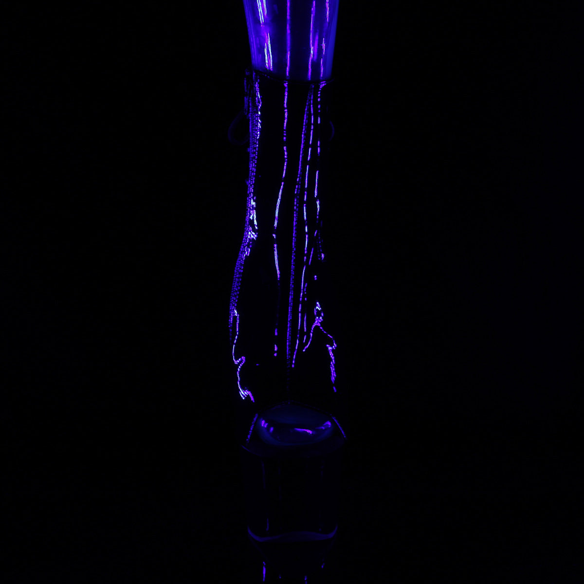 Pleaser Womens Ankle Boots SKY-1018TT Blk Pat/Blk-Neon H. Pink