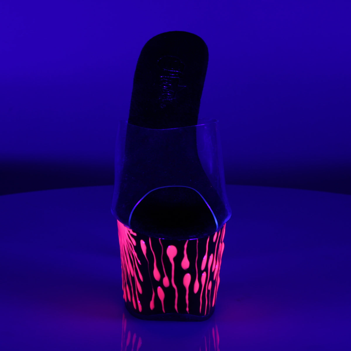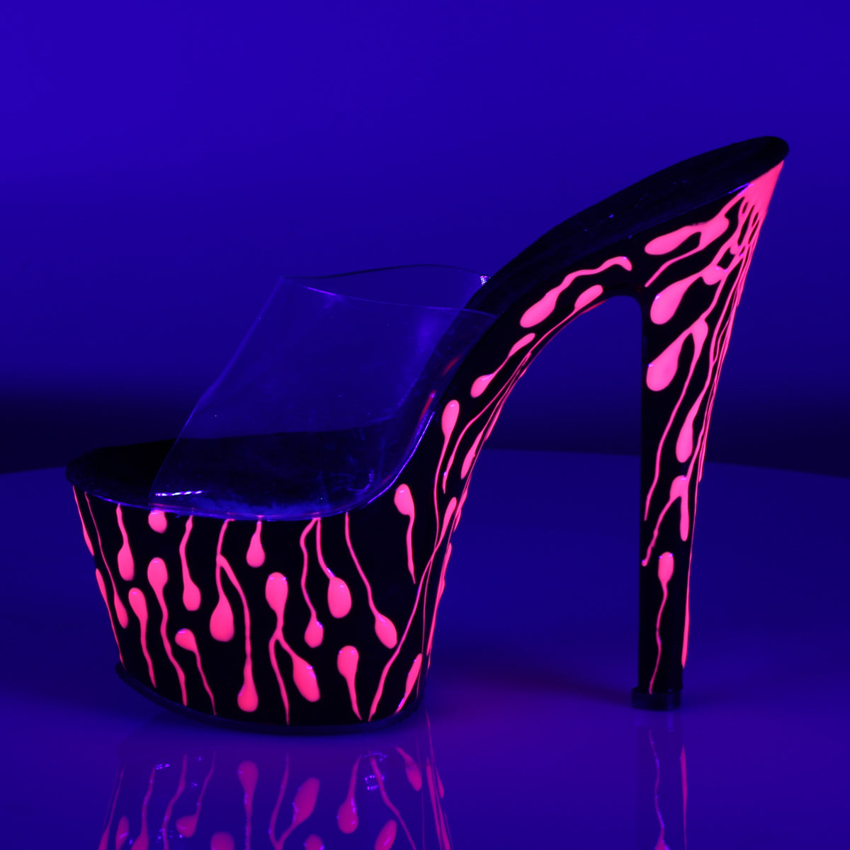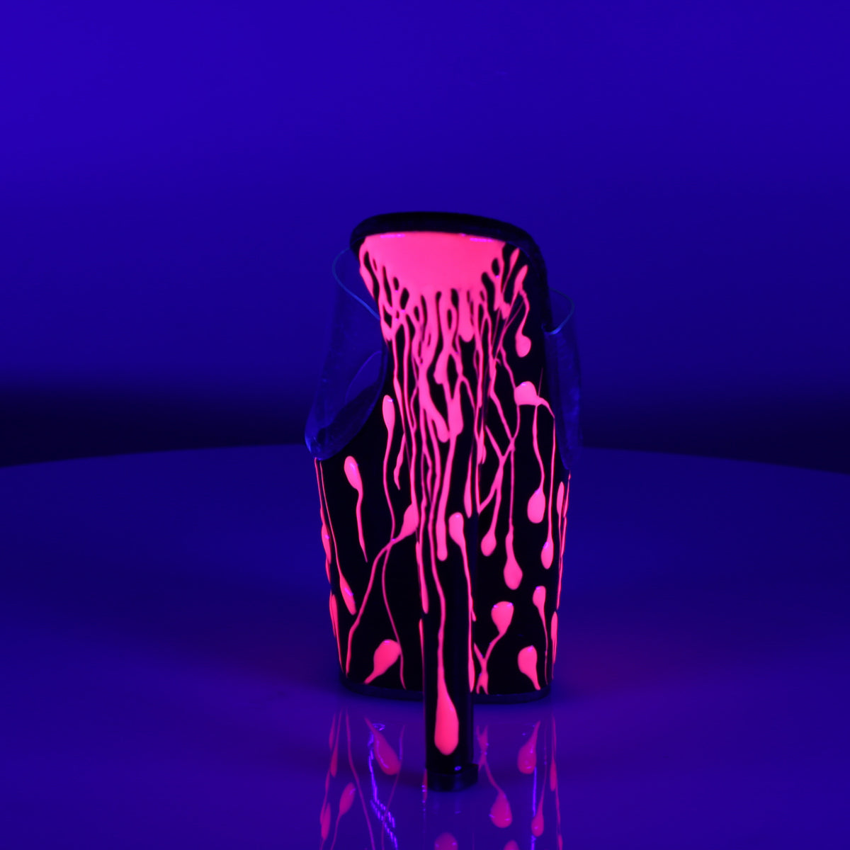 7""(17.8cm) Heel, 2 3/4""(7cm) Platform Slide Featuring Neon UV Reactive Blood Splatter Pattern On the Bottom |