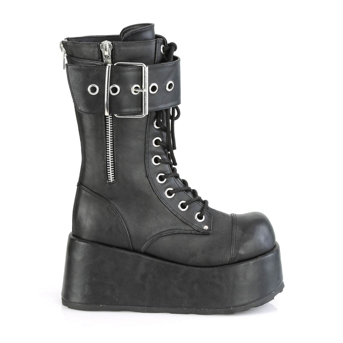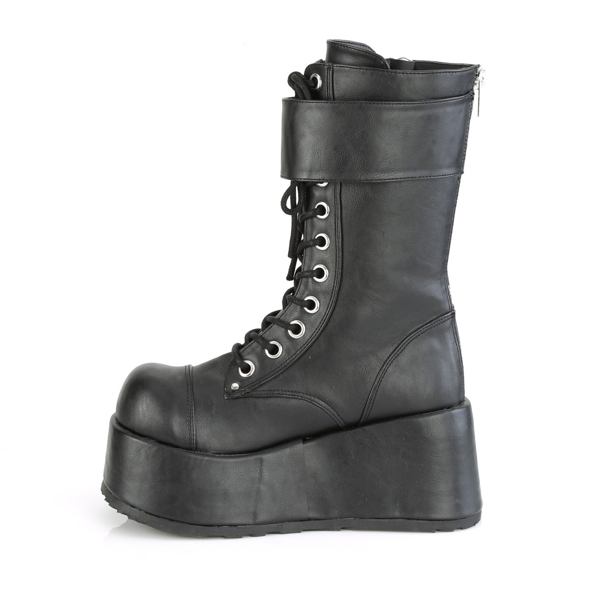 3 1/2 inch platform lace-up mid-calf boot, back zip |
