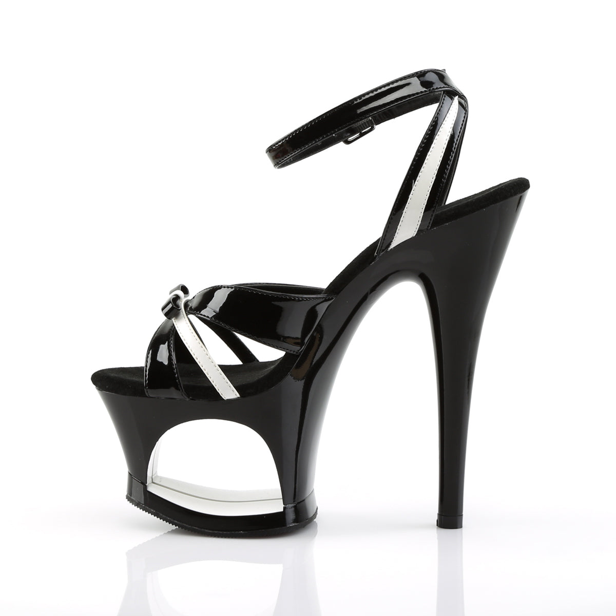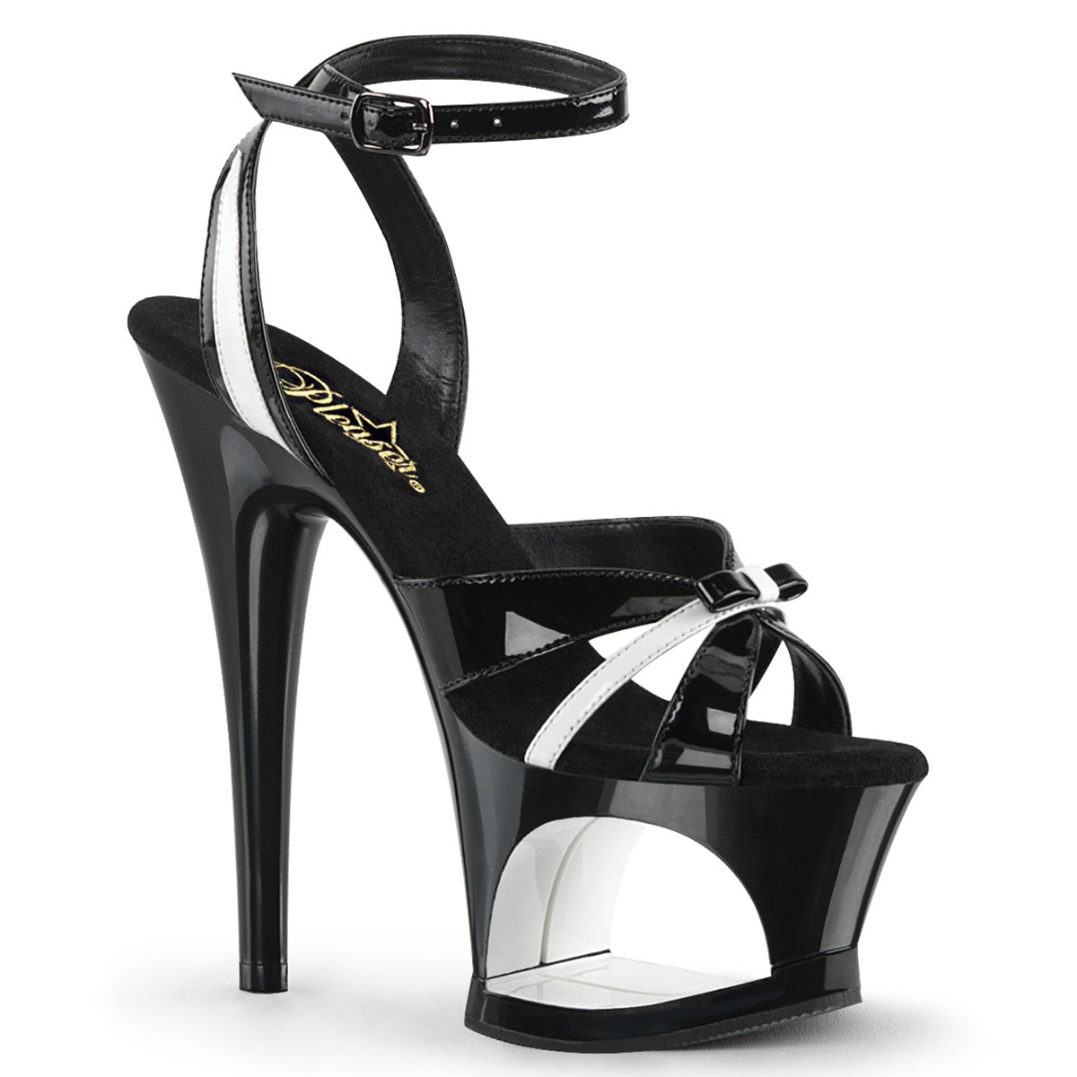 Pleaser Womens Sandals MOON-728 Blk-Wht Pat/Blk