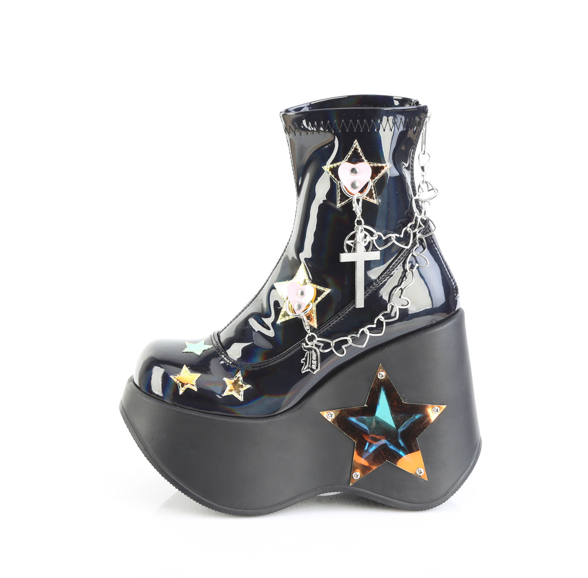 Name DemoniaCult Women's Ankle Boots BLAZE-108 Blk Holo Pat