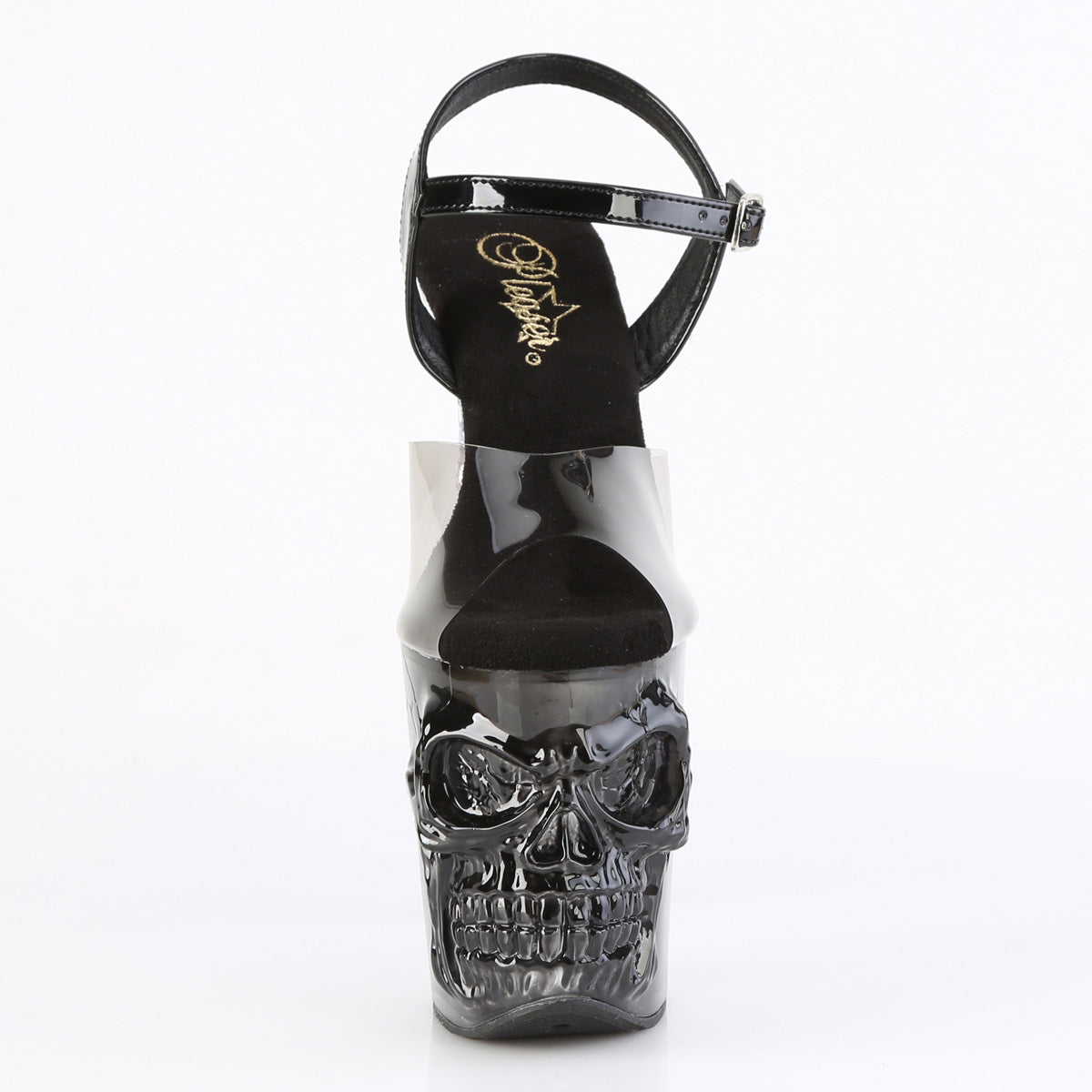 | Additional Description | 8"" (200mm) Finger Bone Heel, 4"" (100mm) Platform Ankle Strap Featuring Skull & Bones Clear/Black Ombre Platform Bottom |
